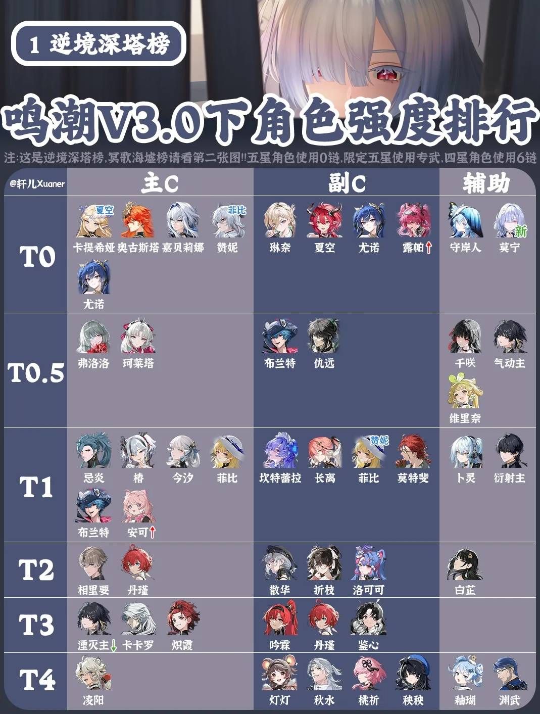 鸣潮3.0下半版本中上线了全新角色莫宁,那么3.0下半的角色强度都是怎样的呢?下面请看由“轩儿Xuaner”为大家带来的鸣潮3.0下半全角色强度排行,希望可以帮助到大家。