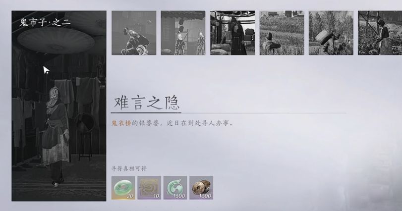 任务接取:鬼市子界碑直走至右侧鬼衣楼,与柜台上的银婆婆对话,选择“询问婆婆心事”接取“难言之隐”支线。