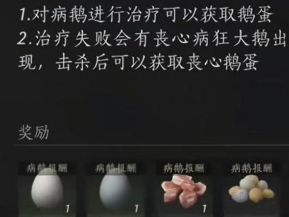 触发方法:大鹅治病任务中治疗开启后直接关闭,大鹅变为"丧心病狂大鹅"。