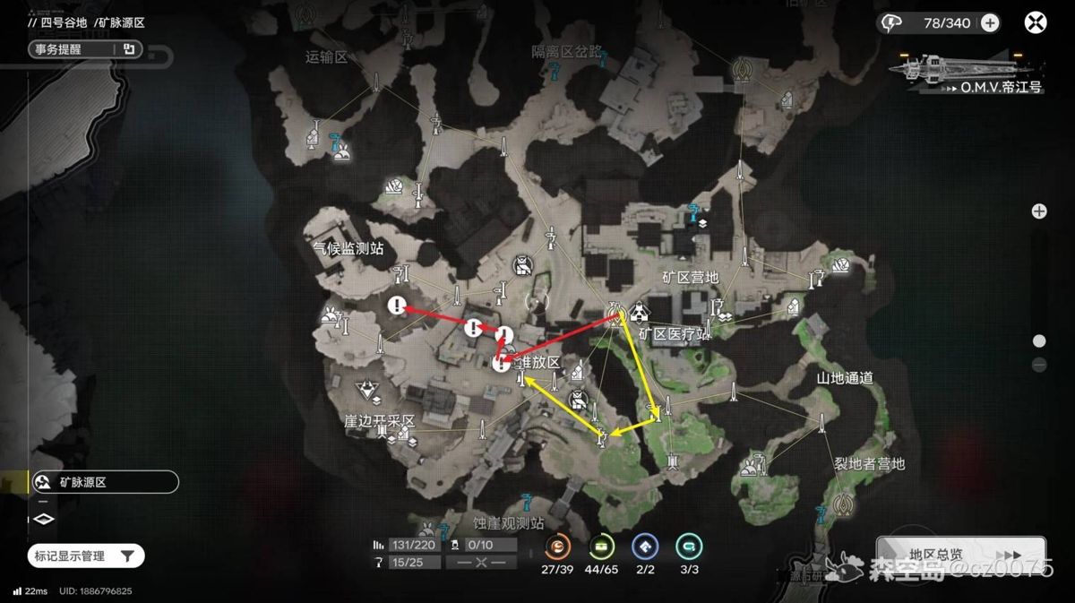 黄线是有用到滑索的路线