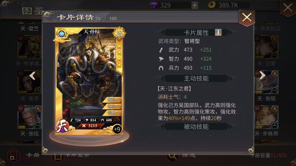 技能消耗士气4点,强化己方吴国部队,武力高则强化物攻,智力高则强化策攻,强化效果为40%+149点,持续20秒。