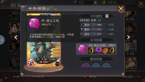 己方骑兵部队物攻提高29%+108点,弓兵部队策攻提高29%+108点,持续20秒;