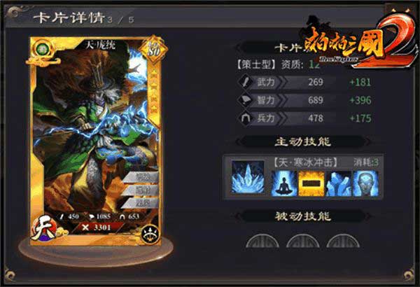 庞统,刘备帐下重要谋士,与诸葛亮同拜为军师中郎将。在游戏中,庞统同为策士型武将,大招“寒冰冲击”可召唤冰刺从天而降,攻击距离最近的敌方部队,造成法术伤害。与刘备、张飞等武将联协,可产生额外加成。