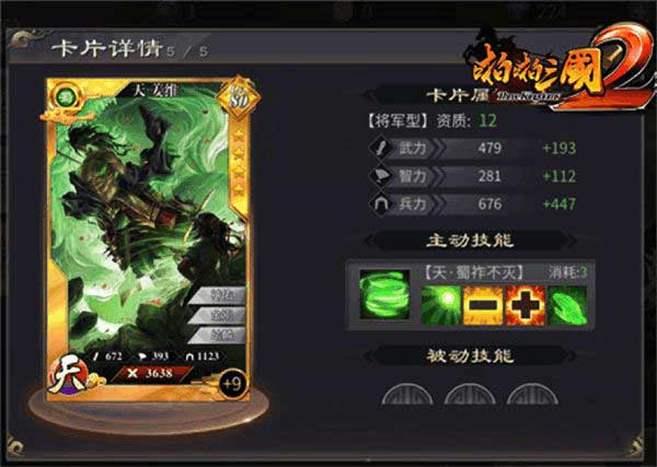 姜维,实属稳坐了三国后期第一,一心光复汉室。纵然面对数倍于己军的虎狼之师,他也立于不败之地。游戏中的姜维,拥有大招“蜀祚不灭”,提升蜀国部队物攻25%,并使所有蜀国部队分摊所受伤害的25%,持续15秒,并持续回血,持续8秒。