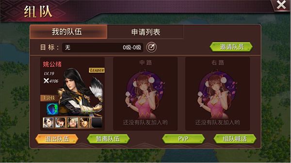 如果是自己当队长的话,直接在组队界面点击“创建队伍”,然后再拉取你的好友或者公会小伙伴就可以啦;或者直接发送组队喊话到世界也可以哦,这样别的人就可以看到你要做得任务了,符合条件再申请进队,主公们要做的就是同意申请,对方就可以进队啦~拉上队友就去征战吧!看到什么打什么,看谁不爽就打谁~恩…只要主公们能战斗到哪里,那就扩疆到哪里吧!