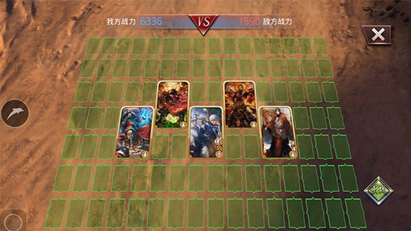 游戏最初会给你一个武将,随着游戏的推移可使用的武将也越来越多,最多可以上阵五个主将,临兵斗者皆列阵在前!布局好你的各个武将之后就准备来一场酣畅淋漓的战斗吧!布局之前要先了解到兵种相克的道理,弓克枪,枪可骑,骑克弓,要合理的安排好自己这边的部队哦~