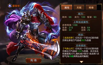 夏侯惇本身就有着很强的伤害,而他与伏羲的合击不仅可以提高当前攻击20%的伤害还可以随机减少对面的一名武将的1点怒气,可以说是非常霸道的。而伏羲本身的技能也能够为魏国武将提高20%的伤害,可以让自身输出的同时也能够强化其他魏国武将的输出能力,所以这对组合是必不可少的~