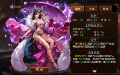 貂蝉作为一名光环武将突破到7之后能够给你带来很大的收益,本身的伤害也不低,当你得到吕布之后,那么她的存在就是必不可少的了!吕布与貂蝉的合击不仅能够对周围造成大量伤害,同时也能够使当次的攻击暴击率提高50%,可以说伤害已经完全爆表了!可以让你在任何活动和副本中轻轻松松通过。