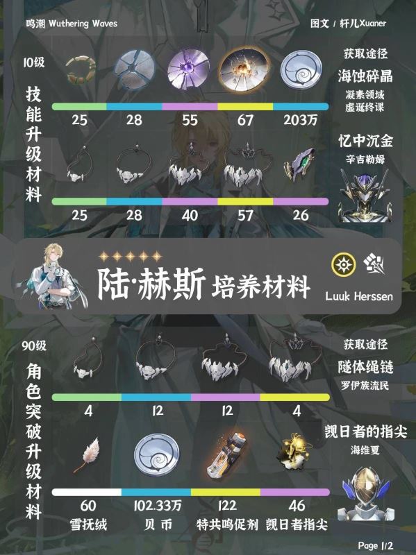 鸣潮陆赫斯是3.1版本下半的新角色,他的培养材料需要哪些呢,想要了解的玩家请看下面“轩儿Xuaner”带来的鸣潮陆赫斯培养材料汇总,希望能够帮助大家。