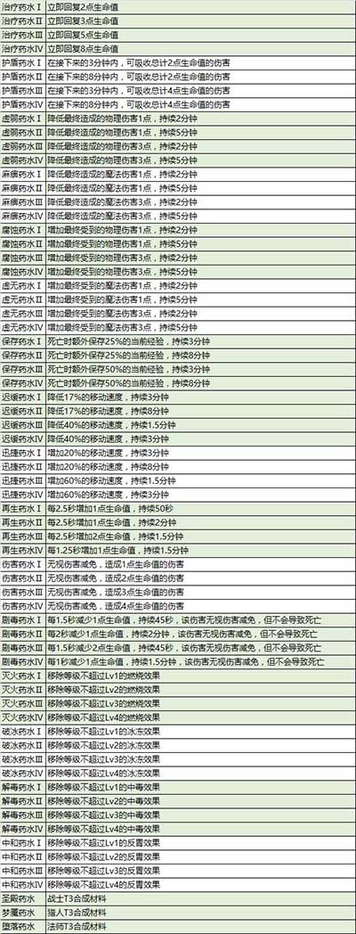 奶块炼金药水有哪些效果?全炼金药水效果属性介绍