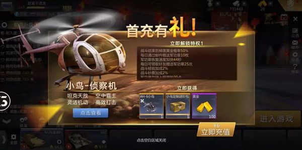 “AH-6小鸟”在巅峰坦克里属于前期最好获得的高级载具,是轻氪金直升机玩家的首选,只要拿个首充就可以开回家,本人就是被这小鸟带上了巅峰坦克的不归路。