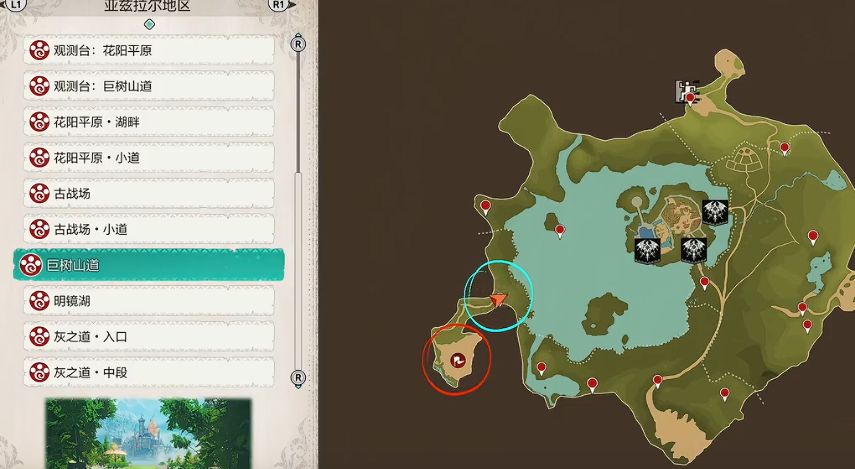 左转深入,走到空场区域(注意树下巡逻的蛮恶龙)