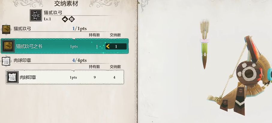 效果:拿到后,武器店会解锁「猫贰玖弓」的制作条目