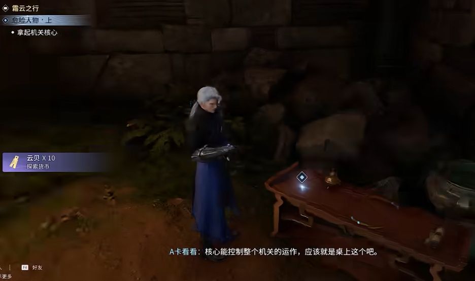 进门拾取宝箱,交互桌上道具获取机关核心。