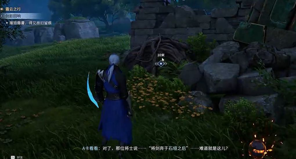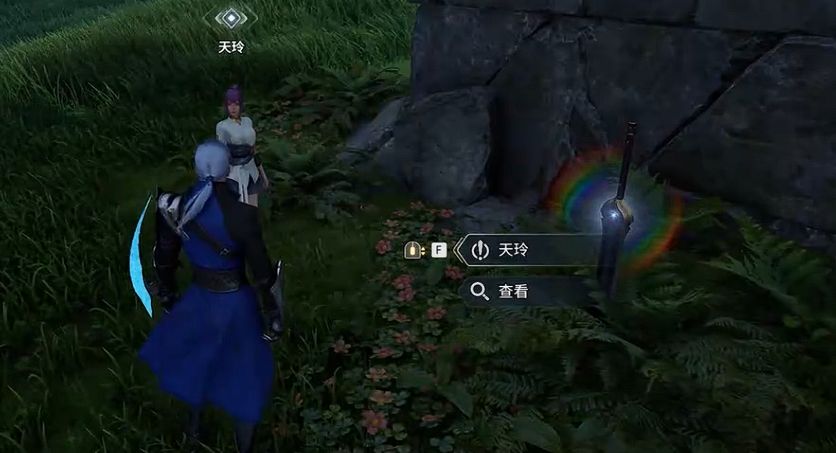 查看剑,等待NPC天灵到来并对话。对话结束后,【剑影回响】任务完成。