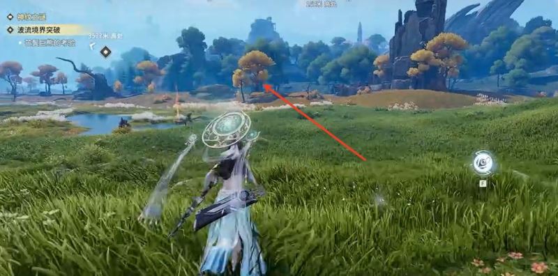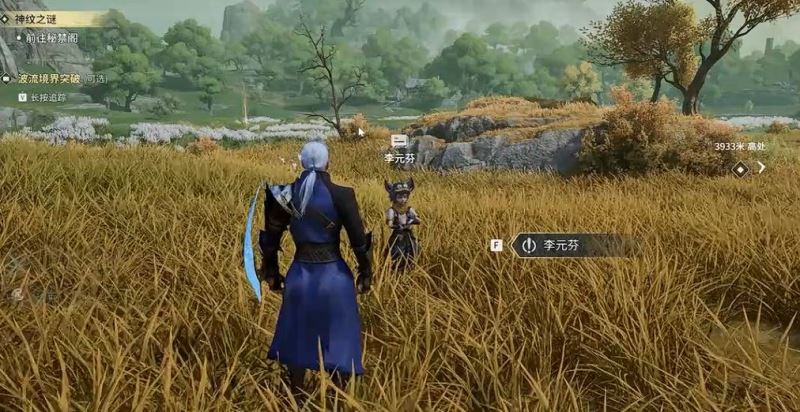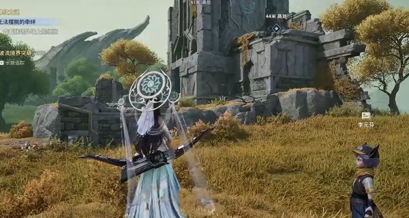 视角转向北偏西方向,在伽罗射箭处附近的树下找到NPC李元芬,与其对话开启任务。