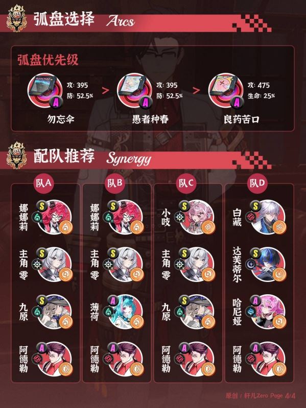 阿德勒弧盘优先携带勿忘伞,完美契合阿德勒,相当于专武,提供护盾强化和防御力。此外可以考虑带愚者种春提高防御力。良药苦口需要注意阿德勒要被打一下才可以触发10秒防御力提升,不稳定。