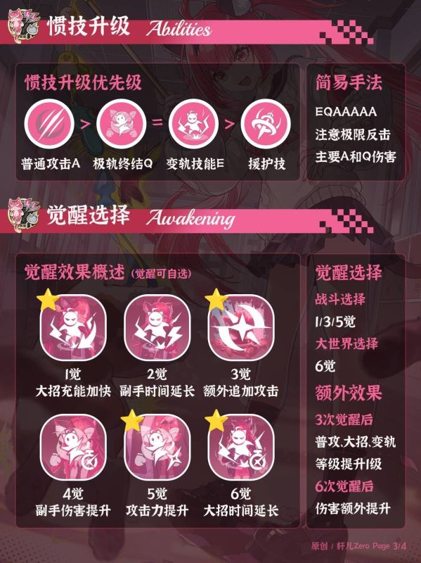 娜娜莉主要输出靠普通攻击和极轨终结(大招),优先升级这两个技能。大招状态下可以无视重力跑图,爬楼非常方便。娜娜莉都市特技可以增加开店售价,在经营玩法也非常强势。如果是战斗提高伤害,可以选择1/3/5觉。如果是大世界跑图,可以选择6觉,大招时间延长,可以更多时间无重力跑图。