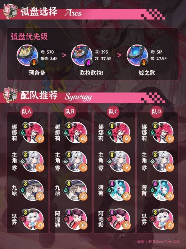娜娜莉为灵属性角色,相邻可进行环合属性为光/咒以及光+相。从卡带效果我们首先要携带一名灵属性队友,九原为最佳队友,没有九原用薄荷替代。除此之外再搭配一名光属性队友,优先推荐主角。最后一位咒属性队友前期推荐阿德勒,后期替换为早雾即可。