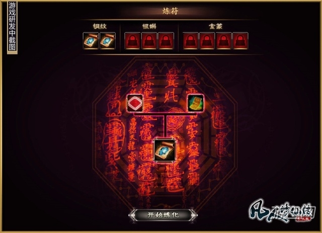 炼符系统分为铜纹、银蝌、金篆三种等级,等级越高的符箓拥有的效果也就越强大。