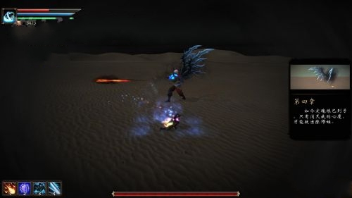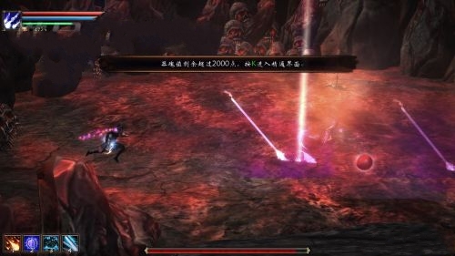 进来过了剧情,就是一场BOSS战,这个boss跟之前的差不多,只不过没有了之前的后续攻击。反之,他又多了2个技能,1个就是图中地上的这个圈圈,而另一个,则是司空见惯的束缚了。打法和大多数拥有束缚技能的BOSS一样,在他攻击到你的一瞬间闪避并且反击。