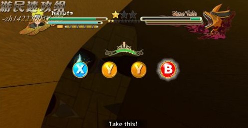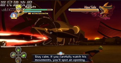 如图,九尾会用尾巴攻击,此时跑到尾巴处按Y即可抽取一部分查克拉,之后即可奥义攻击。