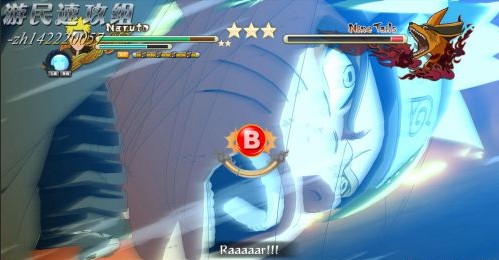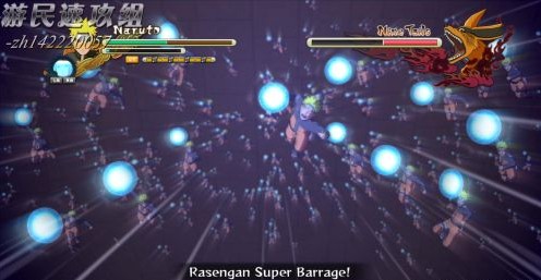 打到一定程度,进入过场,九尾施放尾兽玉,被八尾接住,也因此,八尾的援助也到此为止。