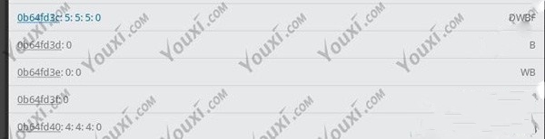 7、在列表中,选择标蓝数值下方第四行值,点一下,选择复制地址