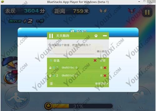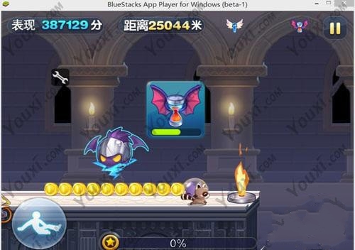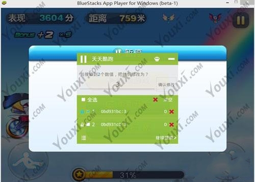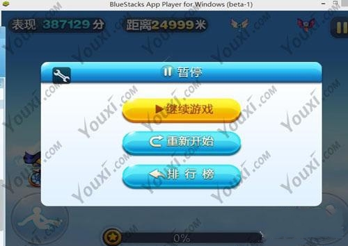 3、天天酷跑刷分回到游戏,人物回复正常姿态,暂停烧饼搜索0