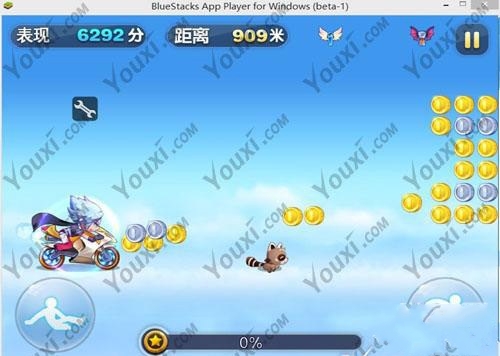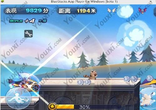 2、游戏一开始,按住滑行键并暂停,烧饼搜索5