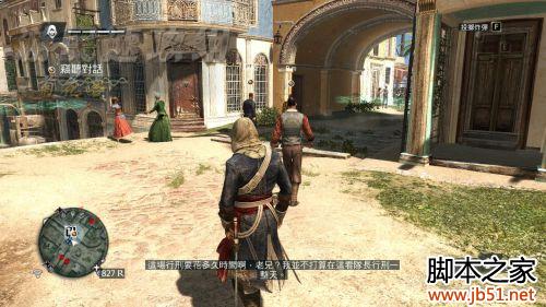 当任务完成后地图上出现一个感叹号,那里就是下一个主线任务地点了。邓肯本来准备拿给总督当做“见面礼”的东西被那群士兵给扣了,以及邦尼特的糖……这一关是跟踪任务,打开鹰眼视角(V),凝视他们一段时间后会标记之,之后就可以透视他们了。跟踪的时候注意不要死死跟在其后,最好是走房顶上,不然被发现了任务可是会失败的!