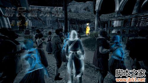 窃听完之后跟着图中这个人,别慌慢慢走,当他进入一个建筑之后,利用ji女引开周围的士兵,进去,他不容易发现你,直接冲上去杀掉,然后拿到钥匙,离开的时候记得一定要翻墙出去,走正门太容易被发现了。之后目标地点是前面那个城堡,要想完美同步不要猴急地冲进去大杀特杀,慢慢来,走右边,右边码头那里有一道偏门,那里的守备比较松,注意一下上方的枪手,他们很容易发现你,利用地形来躲开他们的视线,这边有1个敌人,躲在墙角吹口哨引过来消灭掉,然后往右边走,有个敌人不会动的站在那里,直接杀掉,继续往里面走,可以看到一个火药桶,点燃之后跳窗离开。