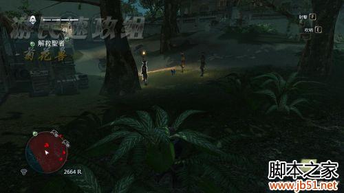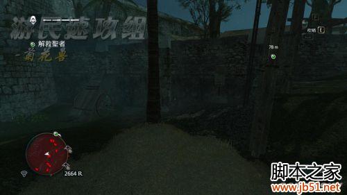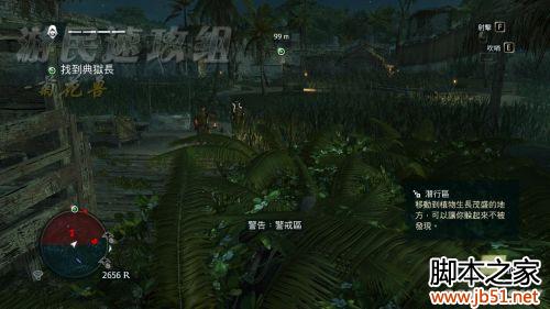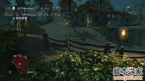 这个任务的话,其实要直接杀进去是很简单的,不过嘛,咱要的是完美同步,那就不一样了……首先钻进草丛中,这里有2名守卫,通过吹口哨,很容易就可以击杀。顺带一提,完美同步的条件是全程潜入+在草丛里杀3个人。这里草丛真的是太多了,只要稍微吹一下口哨,清理掉这些家伙非常非常容易。