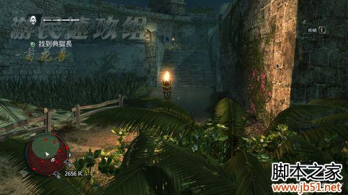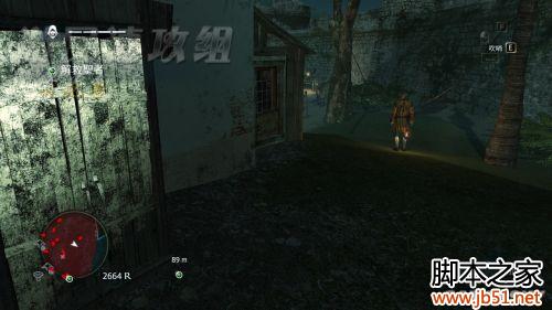这里,有3个守卫,而藏身之处却只有这2个草丛。最右边那个是会离开的,不用担心,咱们从左边绕开,这里不翻墙了,从正门大摇大摆的进去都可以,里面只有一个,趁他背对你的时候,果断爆菊!然后开门进入……这个艰难的一关就过去了