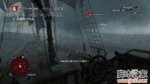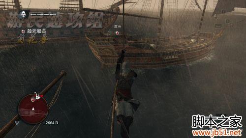 之后要夺船,从这里荡到对面的船上,然后立即解决掉身前的这个守卫,其他的都不用打,直接开船进剧情了。接下来,整个游戏第一次真正的进行海战!