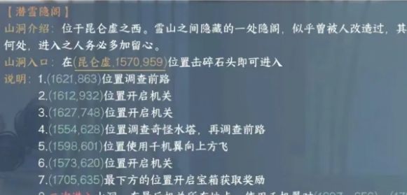1、碎片1和2:在昆仑虚山洞潜雪隐阁中找到并打开隐藏宝箱即可获得两个海马碎片。