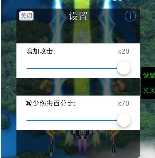 2、在侧栏打开叉叉,攻击设置20,伤害减少设置70
