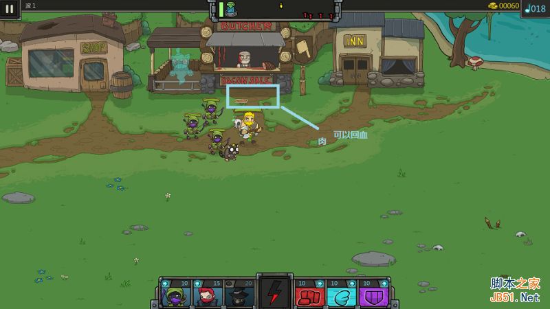 再比如这个肉铺,吃了肉是能够补血25%的!还有一些商铺关着门,这是因为技能等级不够。他们各有作用,这里不一一赘述。