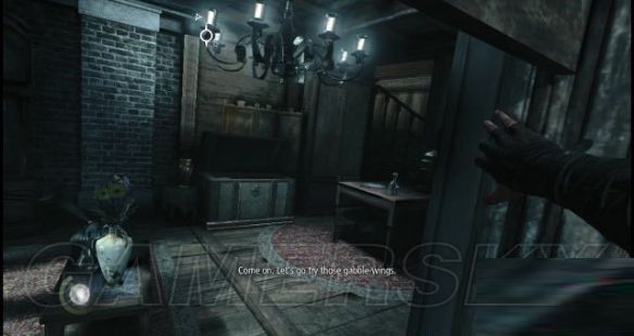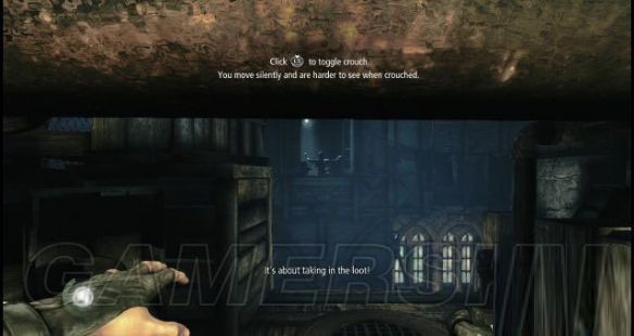 剧情:艾琳已经在楼上恭候多时了并且手上还拿着一份来自巴索的信函(怎么她的声音好像是在抽噎吖),她讽刺加勒特是因为偷了很多东西而迟到了,但加勒特说了一句名言给她听:不是你能投多少,关键是你能偷到什么宝物。他们俩这次的任务是要为巴索从男爵北峰的庄园那儿盗取“始源之石”,加勒特马上感到事有蹊跷,所以抱有犹豫,而艾琳不理三七二十一就翻出窗外继续行动了。
