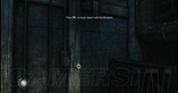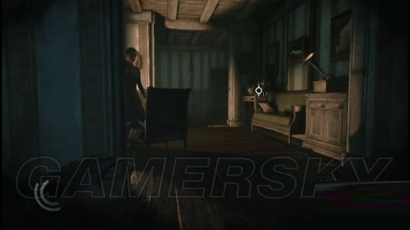 左前方有一个敞开的窗户可以让加勒特进入屋子的走廊上,这房间有一些加勒特需要的文件,所以他必须将它拿到手。