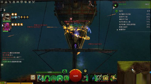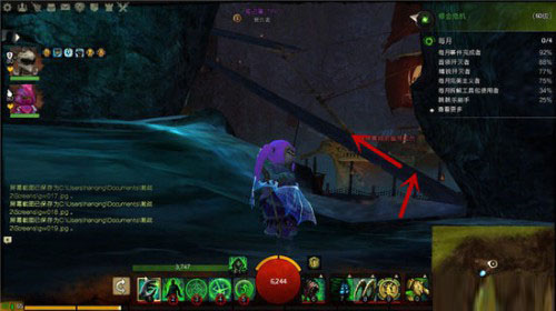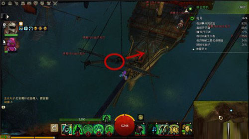 走过来后跳到水中,顺着箭头走上小船。这个船上有很多主动怪,还会持续定身,很讨厌,建议大家组队来。