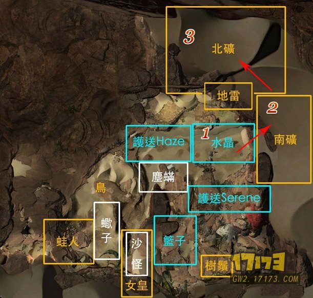 这里水晶是可以两分钟做完 之后到南矿 南矿需要的是DPS 然而最难的就是北矿,要保护人质 同时会有小怪骚扰 小怪可以就打大魔像 小的怪不会攻击NPC 不过矿洞会有落石袭击 这时候给NPC刷再生 保护就可以 不能超过死于6个