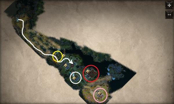 第二图,装备10级以上,一般需要3级博学广文。红圈一般,黄圈箱子能刷开锁腰带。白圈大蜘蛛屁股后尸体有橙装,也能刷开锁腰带。青色圈就是教堂地窖出来后的传送门,后面有两箱子,一个要感知,不过可以硬挖出来。粉圈有一把14级独一无二弓觅心者,用战士按住ctrl能把神像硬砍。紫色圈有个巫师商人,5级以上必出一橙,可刷,屋子还有阴影矿石和掌握阴影书。灰圈有一箱子要高感知才能出来。