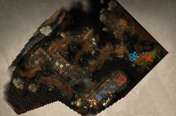 1.盗贼开局学隐身必要条件,北门出发,隐身到箭头处取得第3块血石(前两块在医馆伊芙琳和杰克案发现场)然后在传送点召唤队友集合过图去银谷