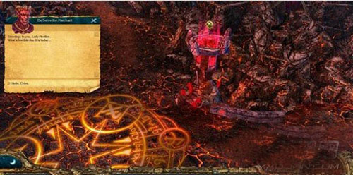 在北边的魔法阵旁边有两个友军建筑物,其中一个是旅馆,我们和旅馆主阿赛尔(Azael)唠嗑。