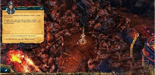 贝尔纳德:“茵塞伯格的特里斯坦(Tristan),身为光明法师并且是我的好朋友,让我带只年轻恶魔作为礼物给他,让他做些魔法实验。