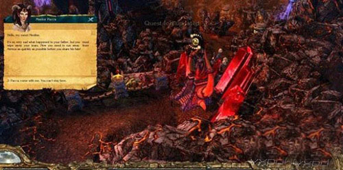 把我们的祖传宝剑拿去,指挥我们残存的部队。你必须防御住敌人对城堡的攻击,撤退到我开启的传送门,通过传送门前往奈塔那(Netana)。然后到达矮人王国,矮人王国一直保持中立,你可以在那里磨练,治疗,并且招募援军。”