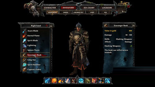 Scavenger Beak, 伤害和 140,5 挥砍,可以开箱子出来,也可以买,忘记那里开出来的。