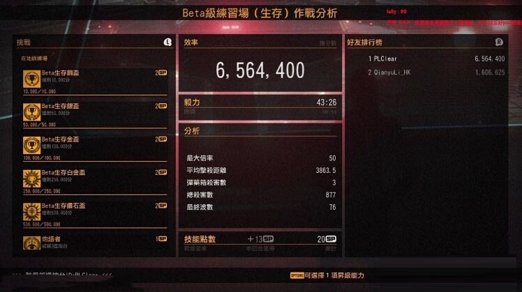 超级子弹杀50人:蓝色无人机掉落吸收后,R2变成超级子弹。用A级生存任务刷,敌人刷新不要打。躲起来等无人机刷。吃了之后用L2专注打,否则时间太快,杀不了几个就没了。难点在于无人机是随机颜色刷能量球的,持续时间还短。。