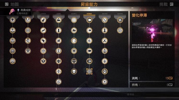 流程通关后技能点一般都加在了前几项,后面2个隐藏最后才会出。建议前期保留一些点数尽量能把R1加满!